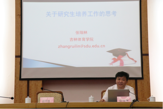 7月4日,吉林省体育局局长、党组书记张瑞林教授应邀莅临我校,在田家炳3楼多功能厅作《关于研究生培养工作的思考》专题讲座。校党委副书记银熙惠主持,体育学院领导班子、研究生导师、博士及200余名师生到场聆听。