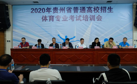 5月24日上午,2020年贵州省普通高校招生体育专业考试培训会在贵阳奥体中心新闻发布厅召开。贵州师范大学副校长赵守盈、省招生考试院副院长罗勇及有关职能部门负责人出席会议。来自贵阳市内高校的100余名考官参加了培训会。会议由体育学院党委书记蒙黎明主持。