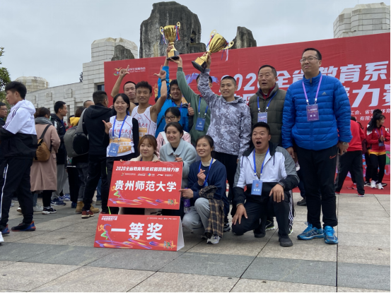 10月17日,由贵州省教育厅主办的2020年全省教育系统校园路跑接力赛在贵州财经大学举行,来自全省的86支队伍、683名运动员参赛。经过激烈的角逐,贵州师范大学代表队顽强拼搏、团结争先,最终获大学乙组冠军(一等奖)、甲组亚军(一等奖)的优异成绩。